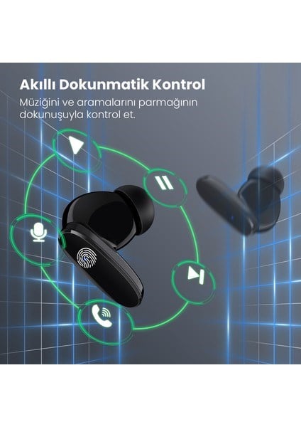1hora AUT205 Tws Bluetooth Kulaklık HT22 - Oval Tasarım - Kablosuz - Şarj Kutulu - Ios ve Android Uyumlu - Stereo Ses - Black