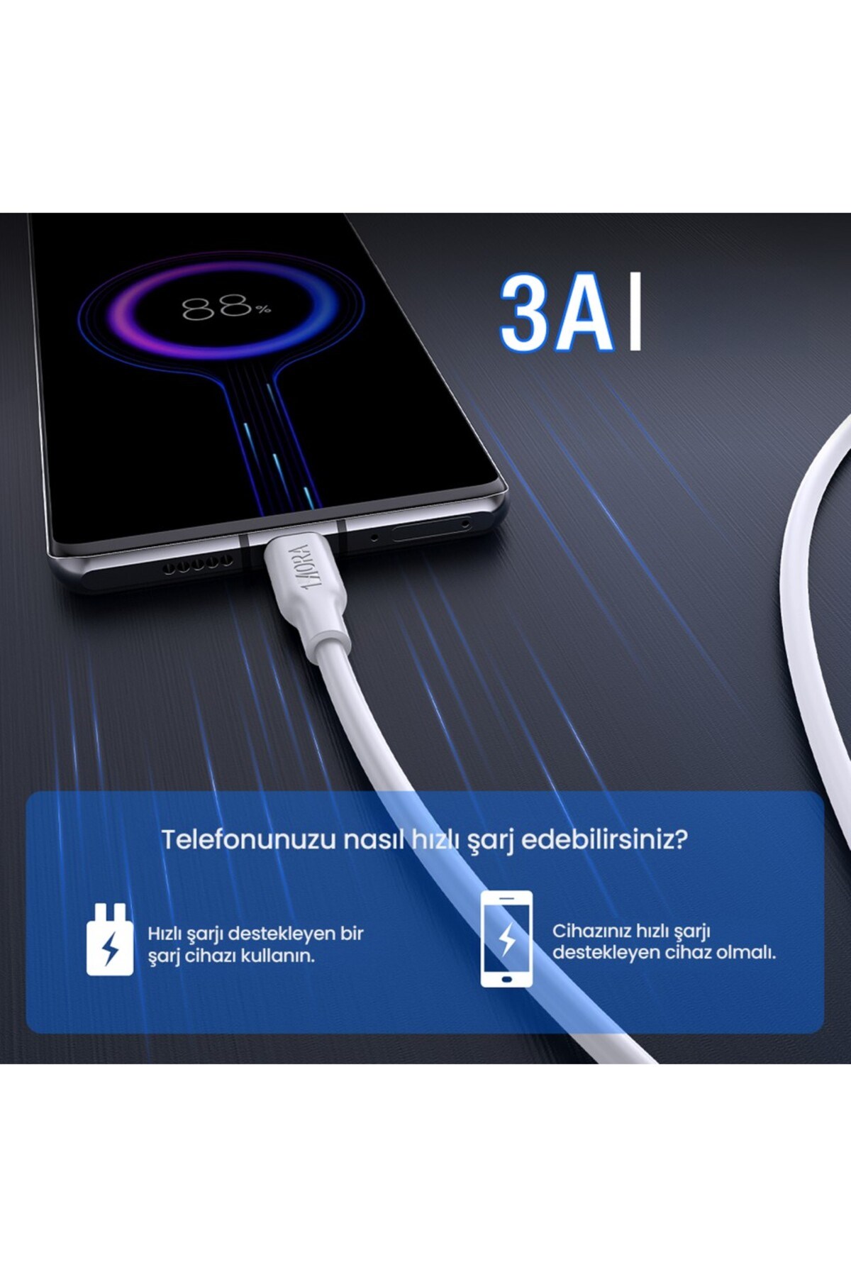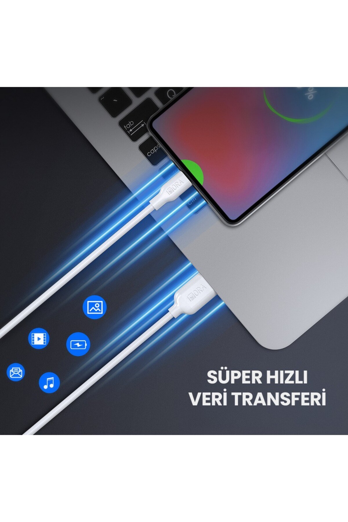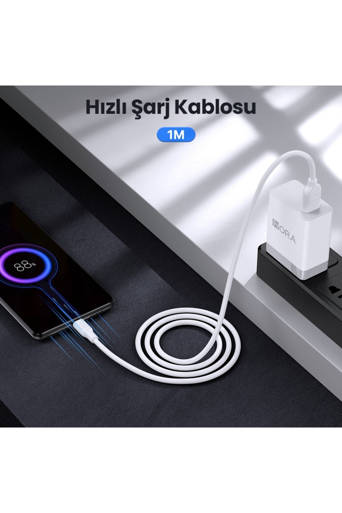 1Hora CAB251 3A Type-C Data ve Şarj Kablosu - 1 Metre - Hızlı Şarj - Beyaz
